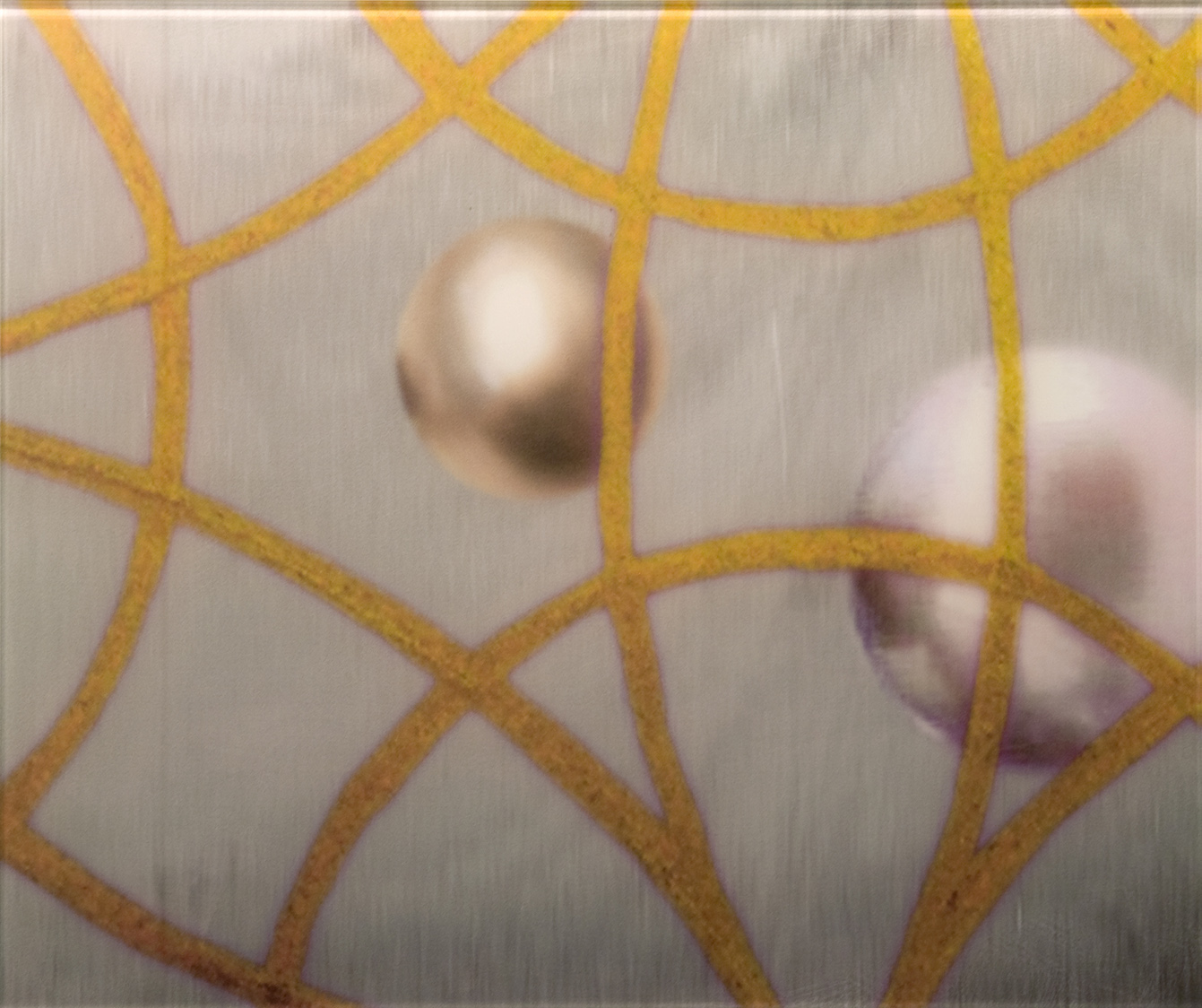 Akvarell och fotografi överfört till tryck på laminerat glas. Måleri direkt på vägg.