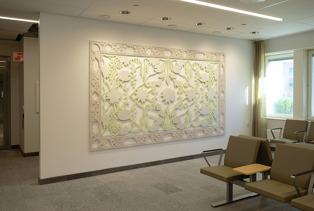 Utformning av entrén till Nya psykiatrihuset, Umeå Universitetssjukhus.